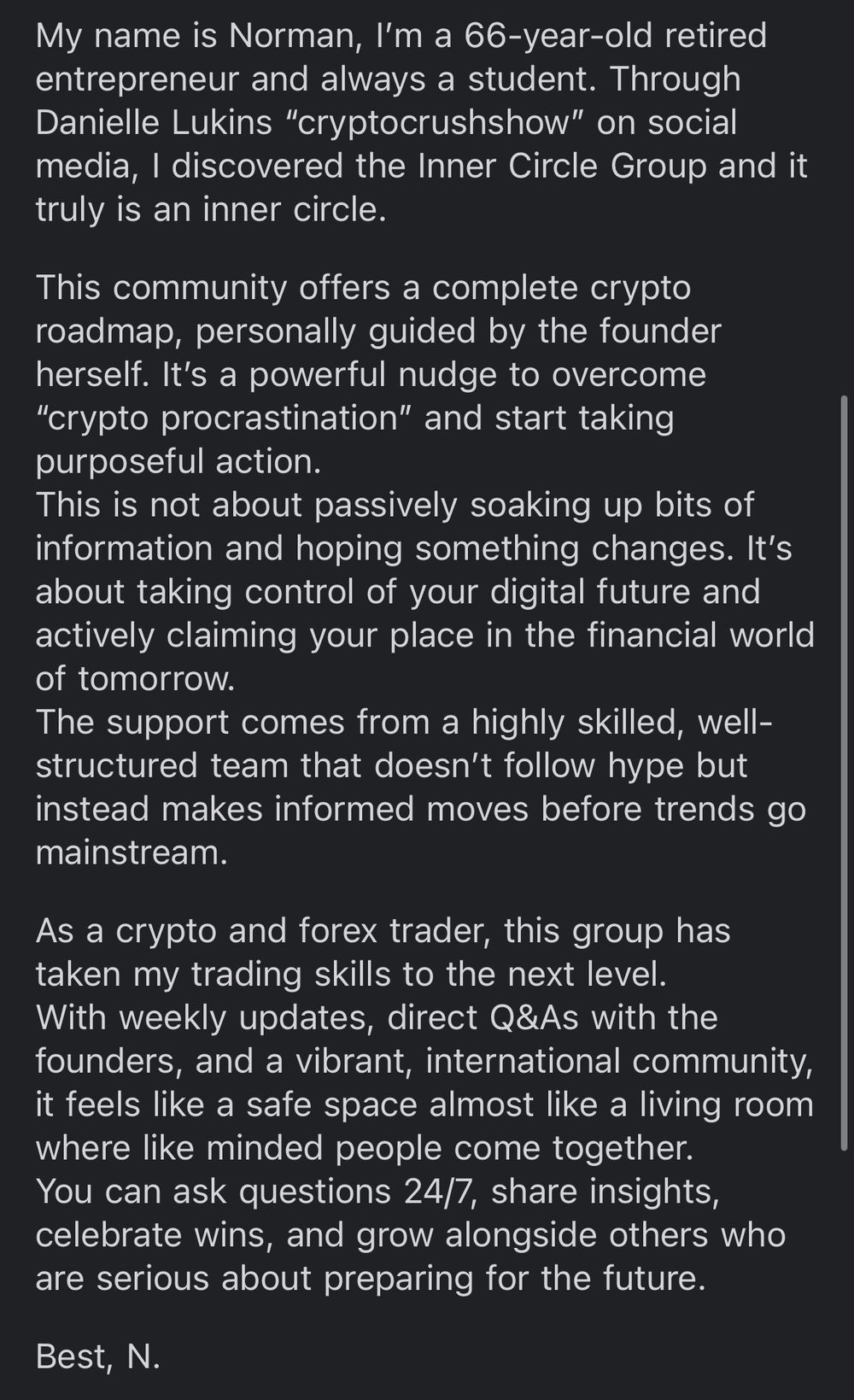 Perfect. Most Crush Circle members join after dabbling and not seeing returns. The program is designed to help you reset, refine your strategy, and make confident, smarter moves — even if you’ve made mistakes in the past.